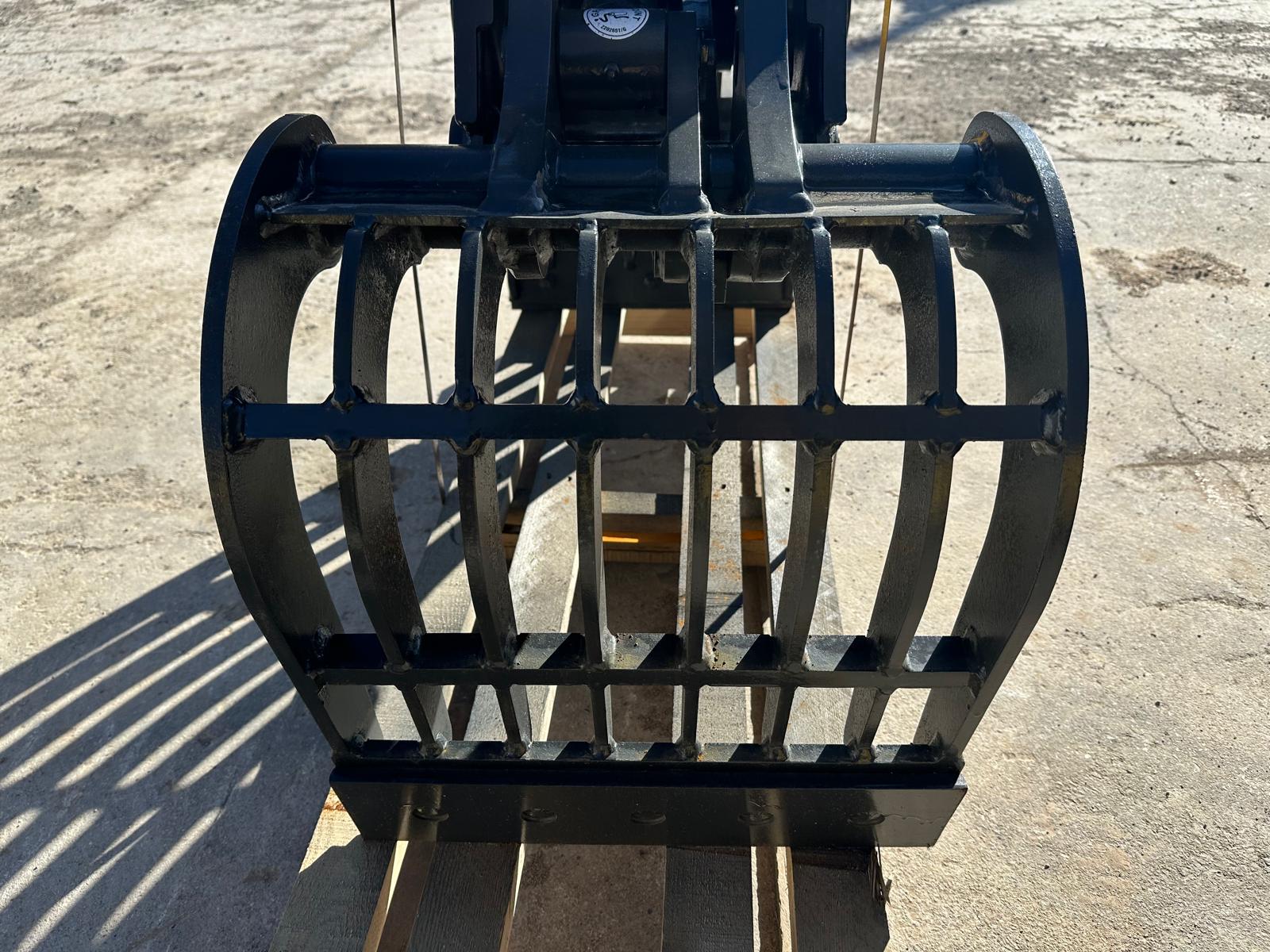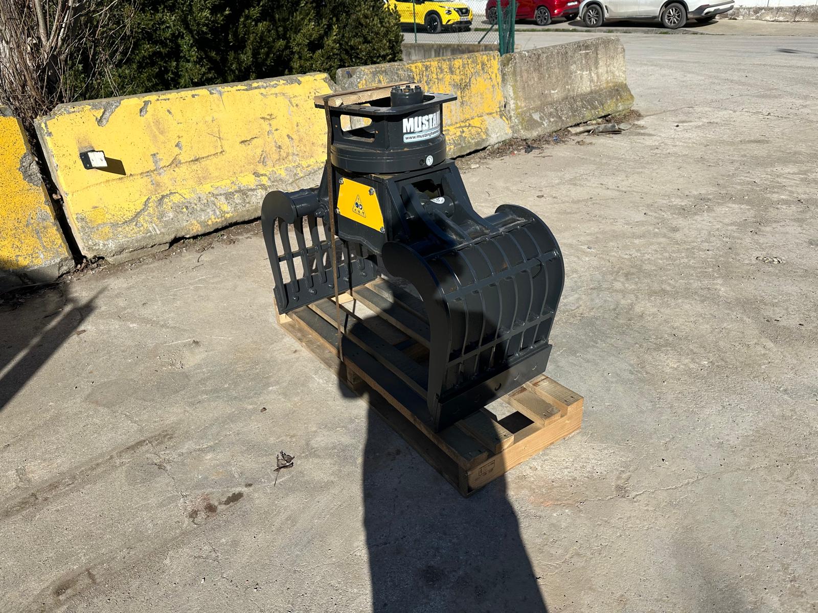 Pinça escullera per col·locar pedres de murs o per a demolicions. Marca MUSTANG model GRP250D. Pes operatiu de 310kg. Perfecta per a minigiratòries de 3t a 8t. Rotatòria 360 graus. Mides obertes 1040mm X 0.5 ample. **NOVA A ESTRENAR**. Es pot veure i tastar. Atenc WhatsApp. www.ecoglobal21.com