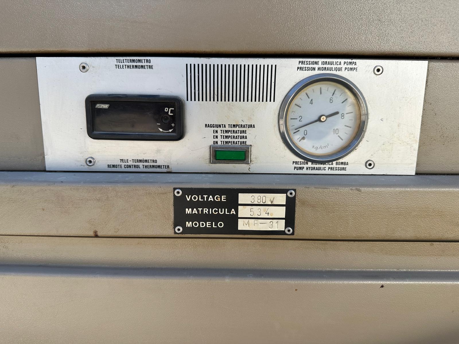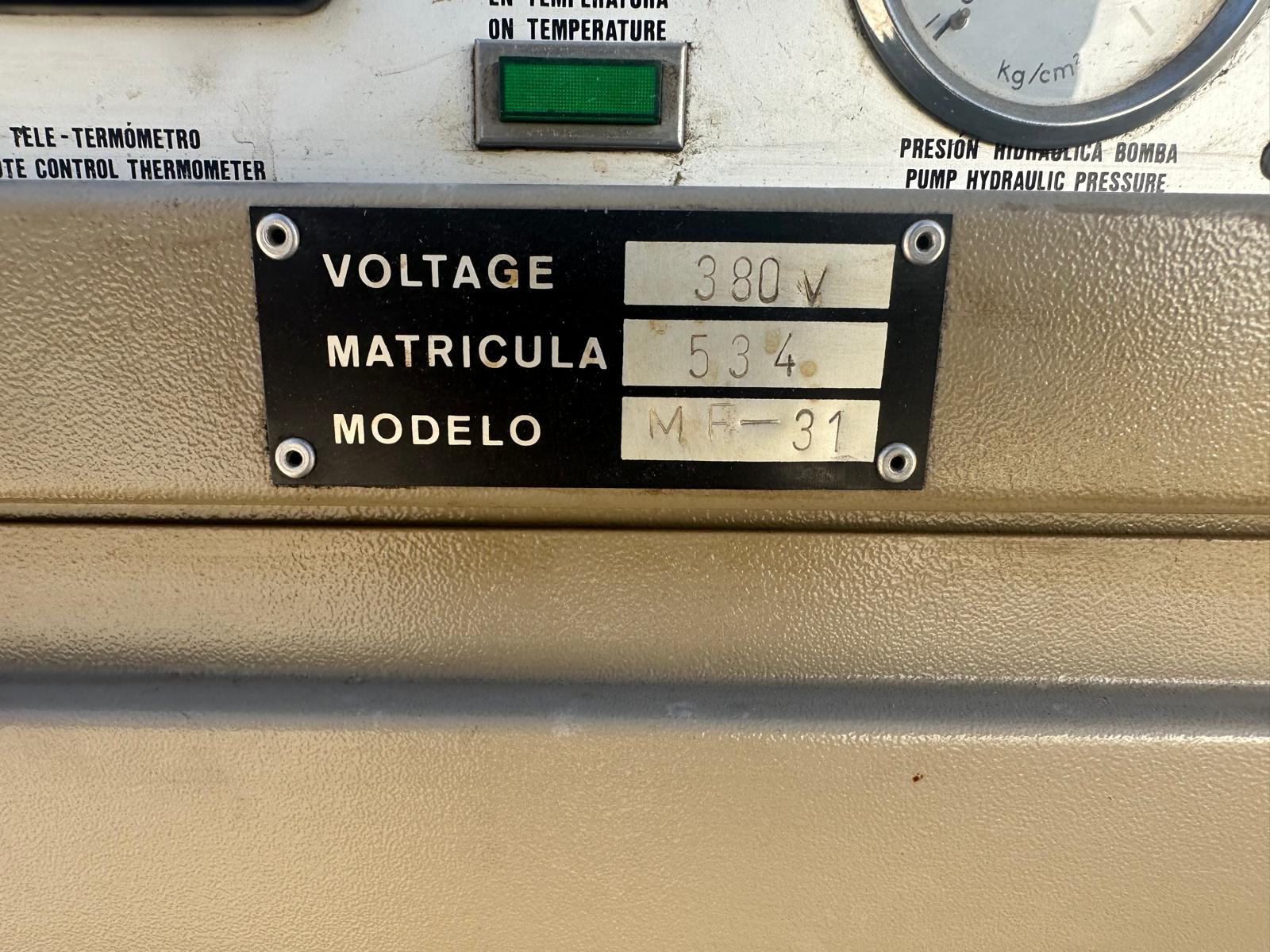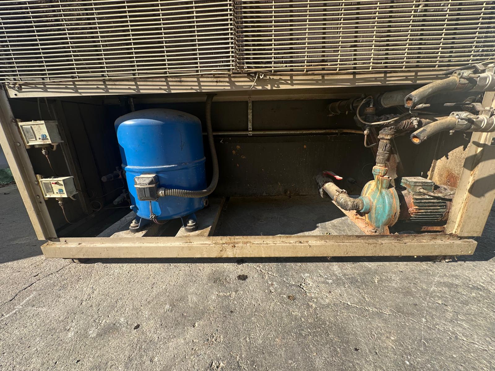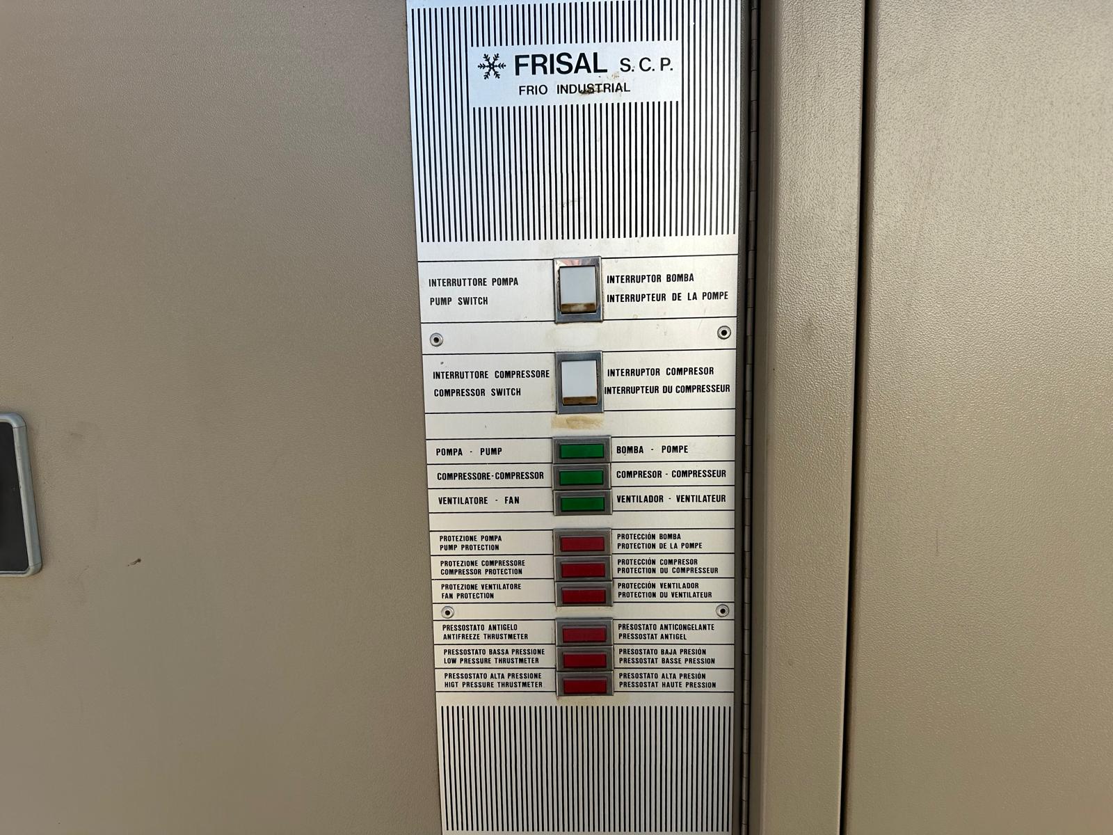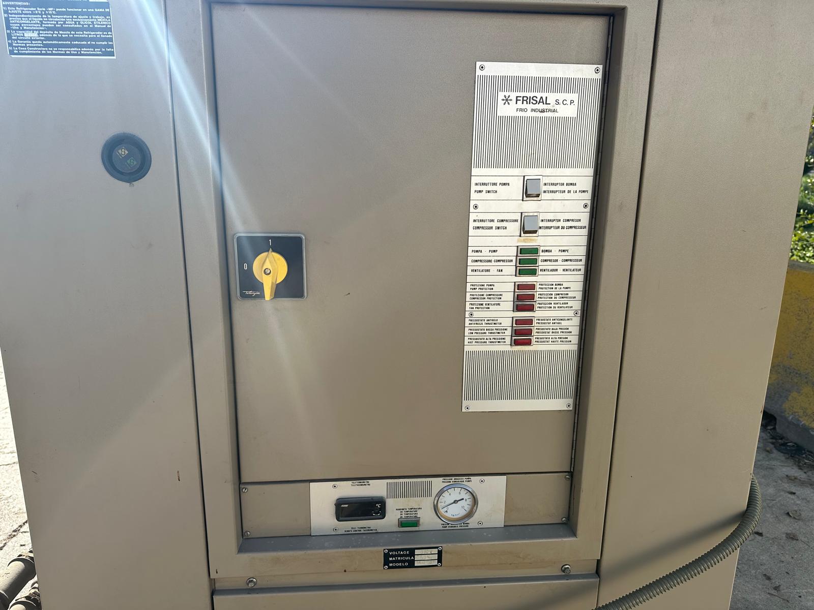 FRISAL brand industrial refrigerator, model MF-31, in excellent working condition. Air condensed water chiller, for industrial processes especially plastic injection, hydraulic citcuits cooling. 10HP compressor brand Maneurop, with an approximate cooling power of 24000frig/h with water at +10oC. Includes 300lts open inertia tank, and water pump. It operates at 380V, for plastic injection processes or other industrial applications that require a reliable cooling system. In good condition. You can see it. I attend to WhatsApp.