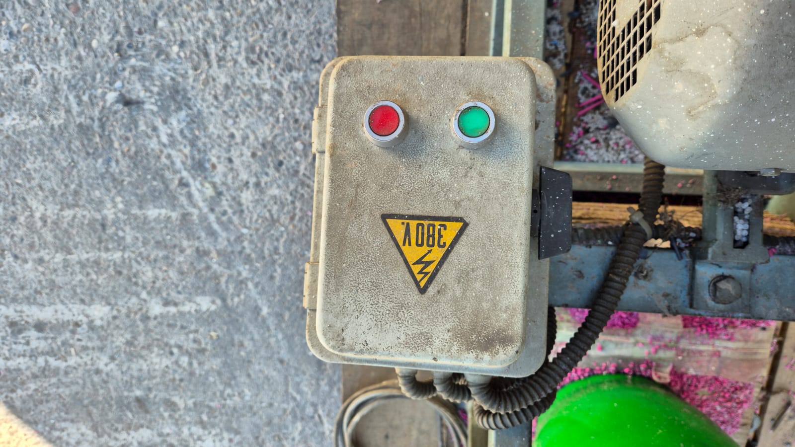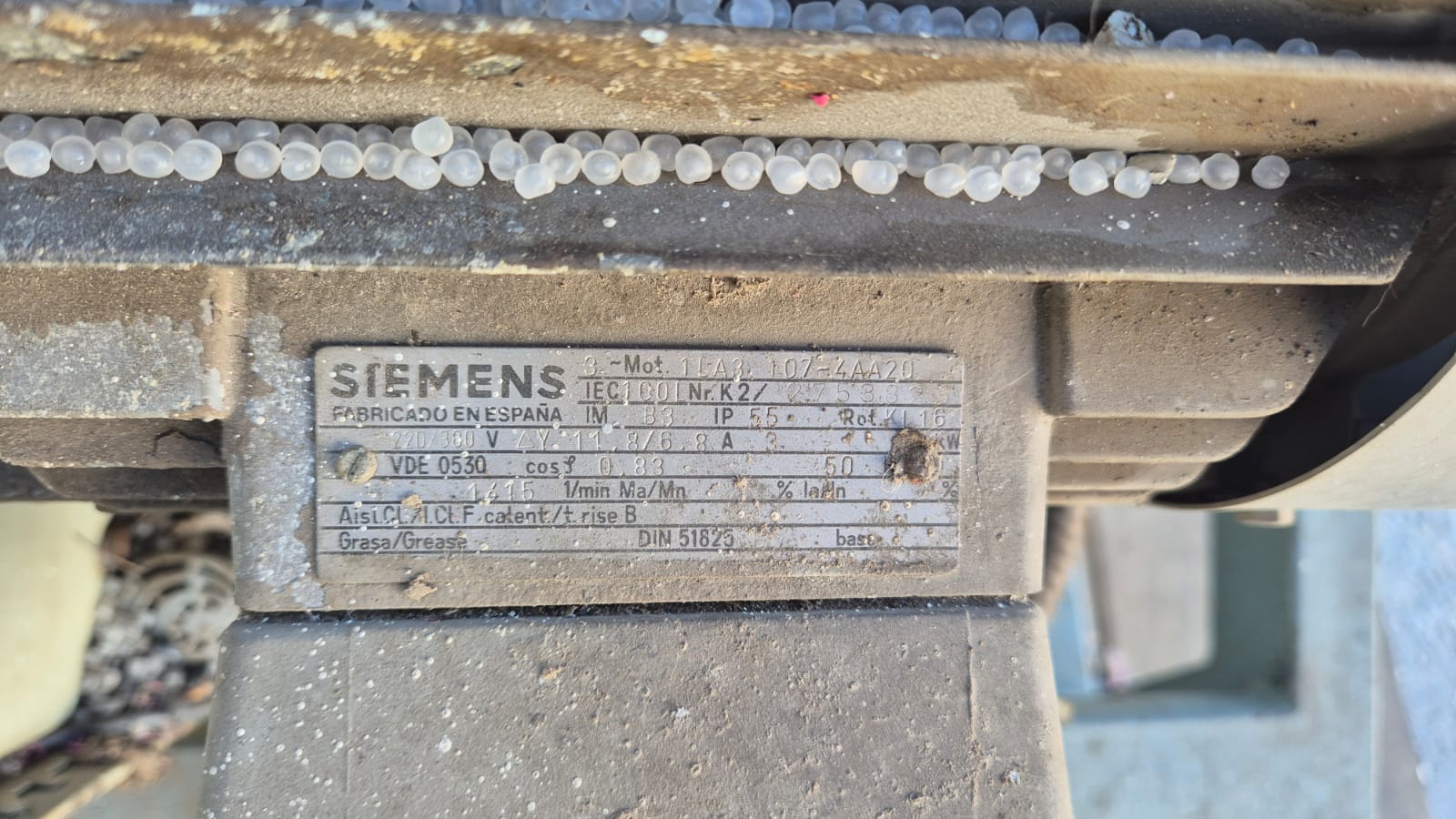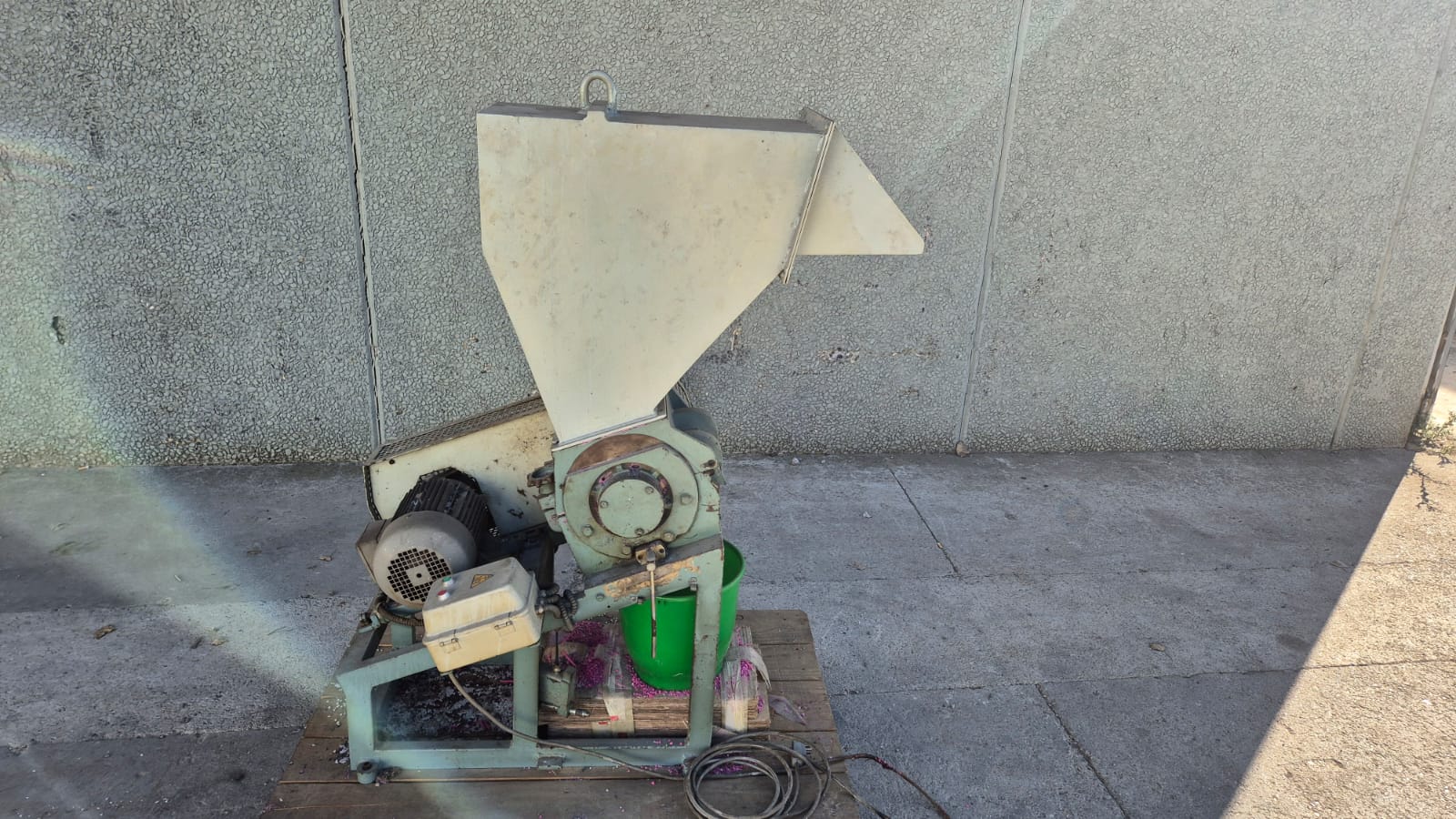 Industrial plastic shredder with a 220/380V Siemens motor.