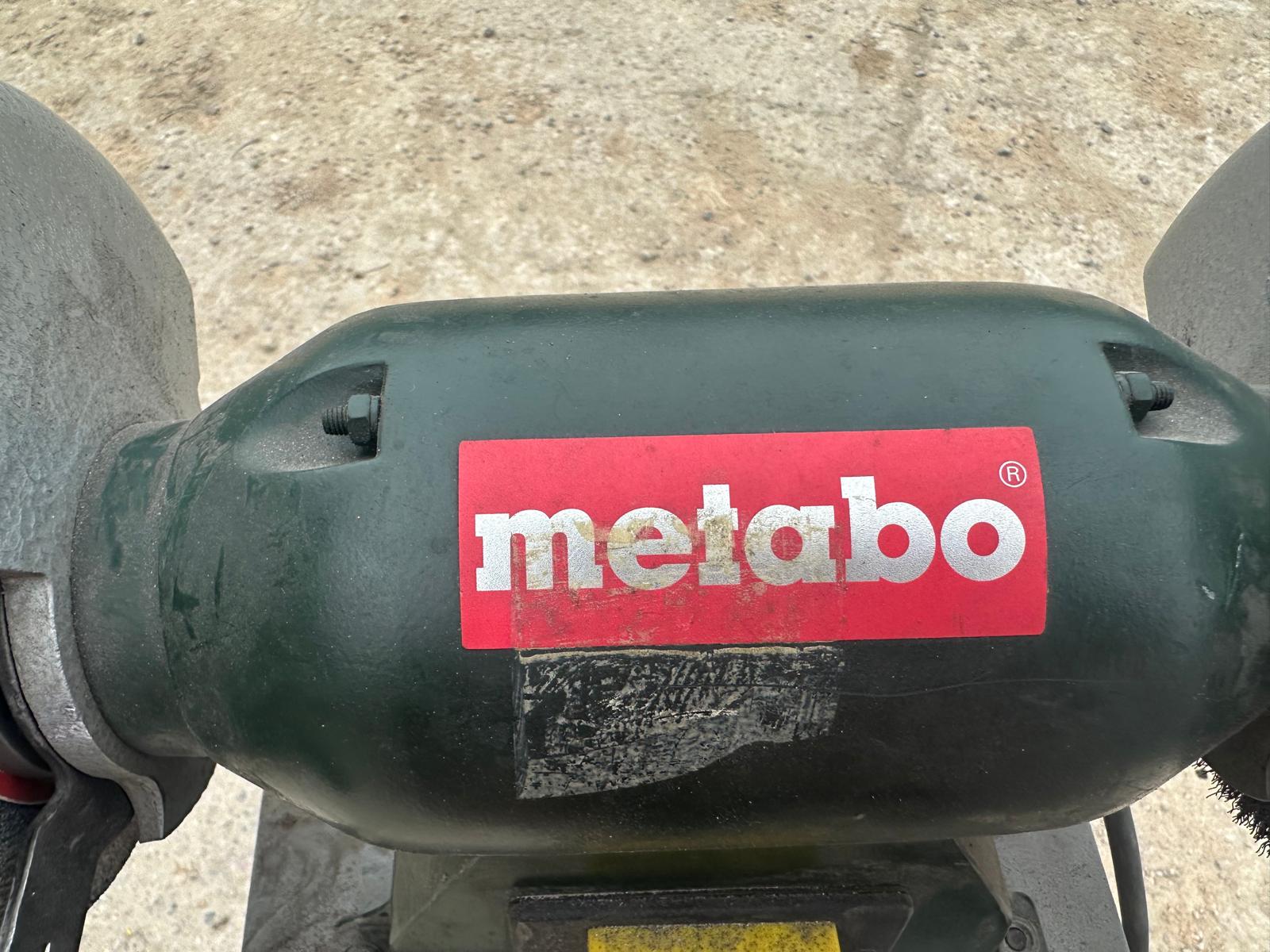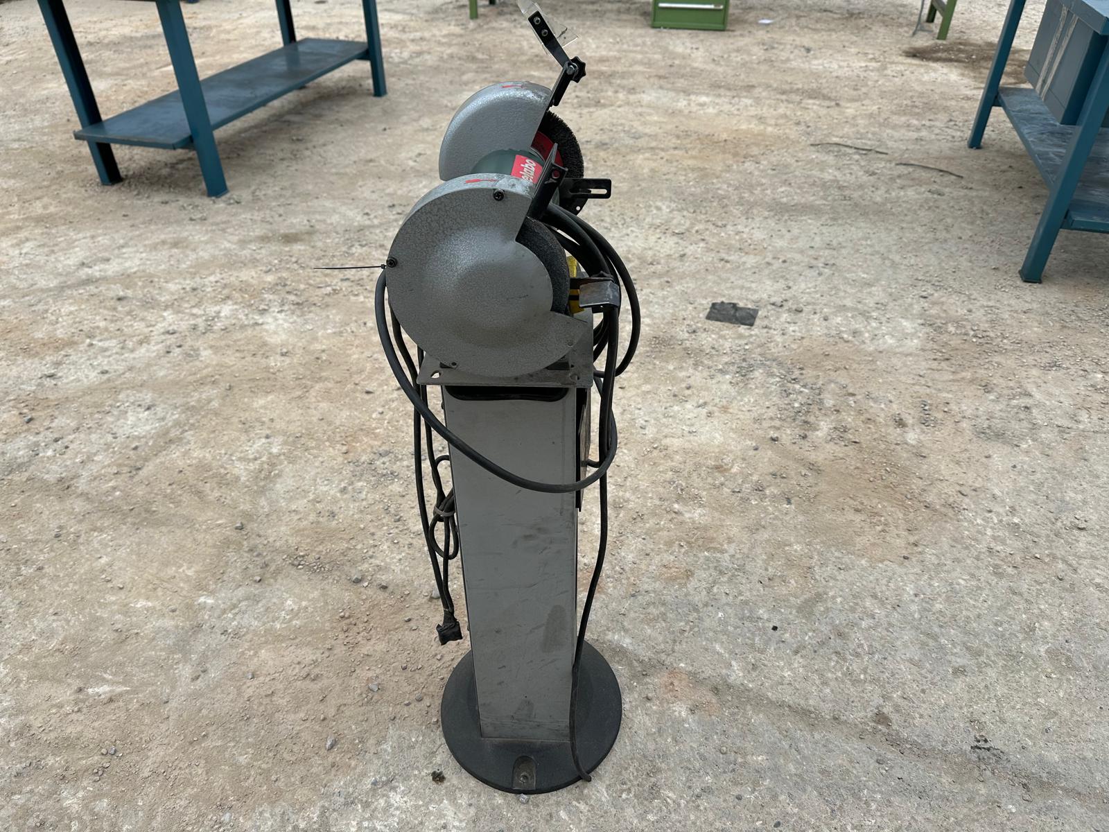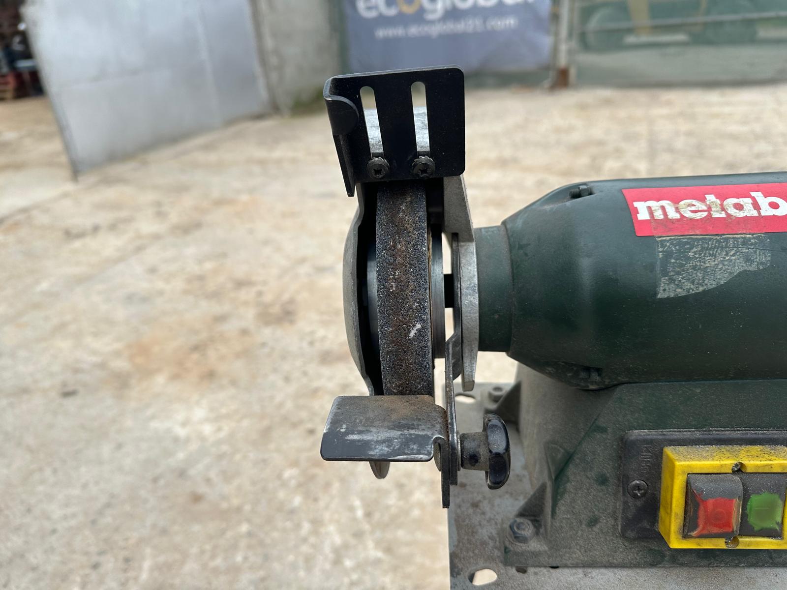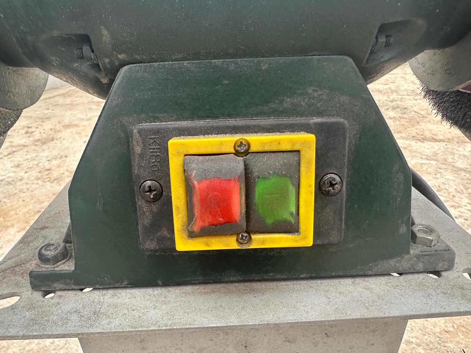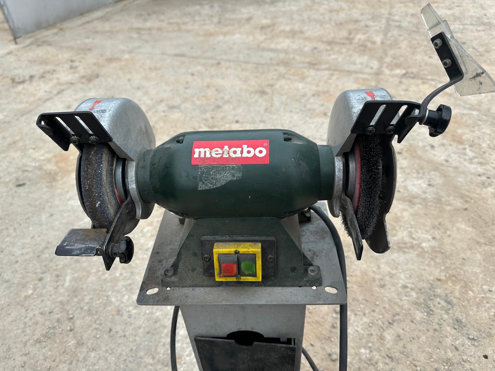 Metabo DS D 6175 bench grinder (2006 model). Three-phase 400V (3~), 50 Hz, 1.2 A. Power P1 550W / P2 400W. Speed ​​2840 rpm. IP43 protection. Mounted on a metal pedestal with an ON/OFF switch. Includes grinding wheel and wire brush. Works well; can be seen and tested. Contact me via WhatsApp.