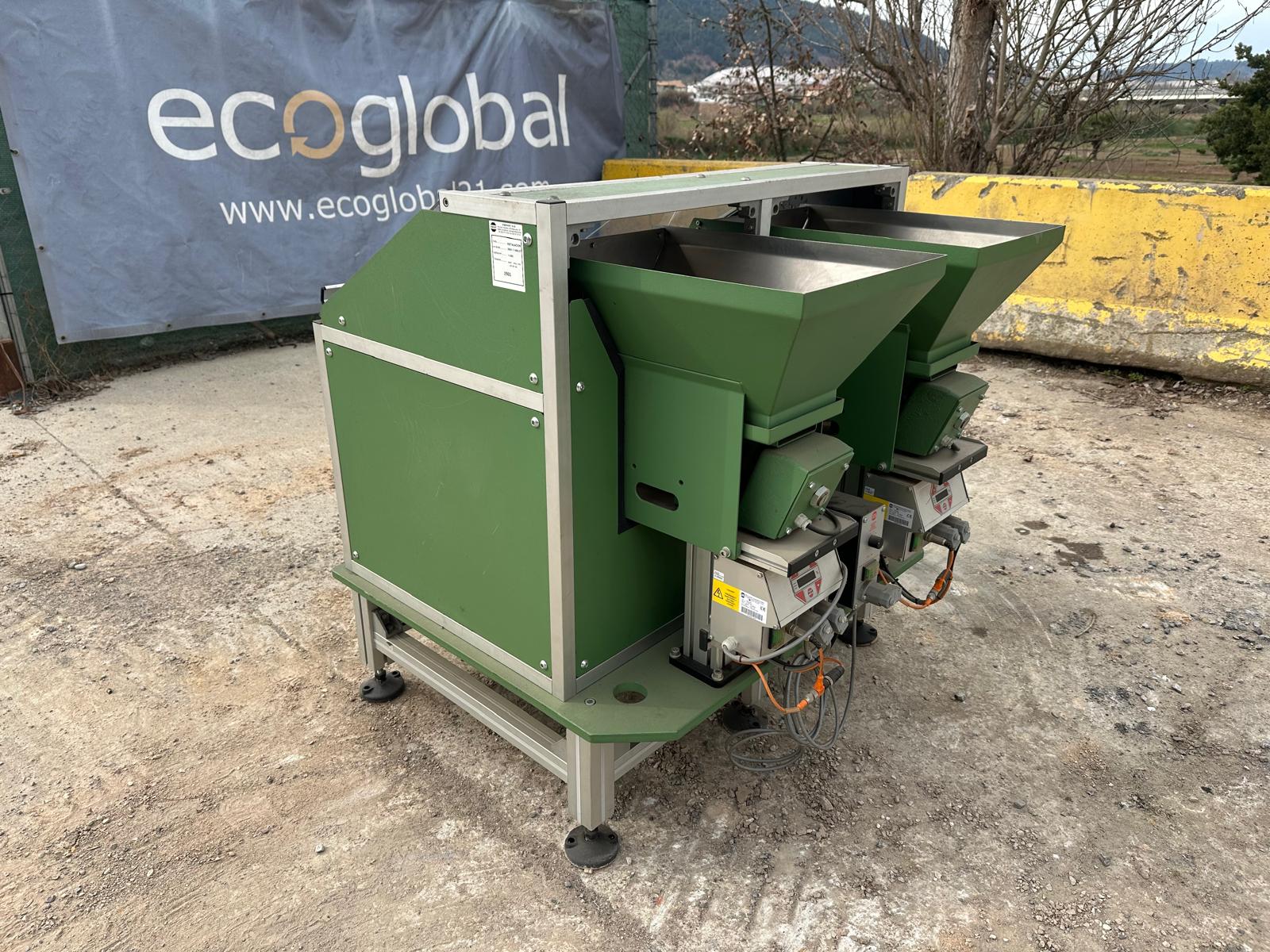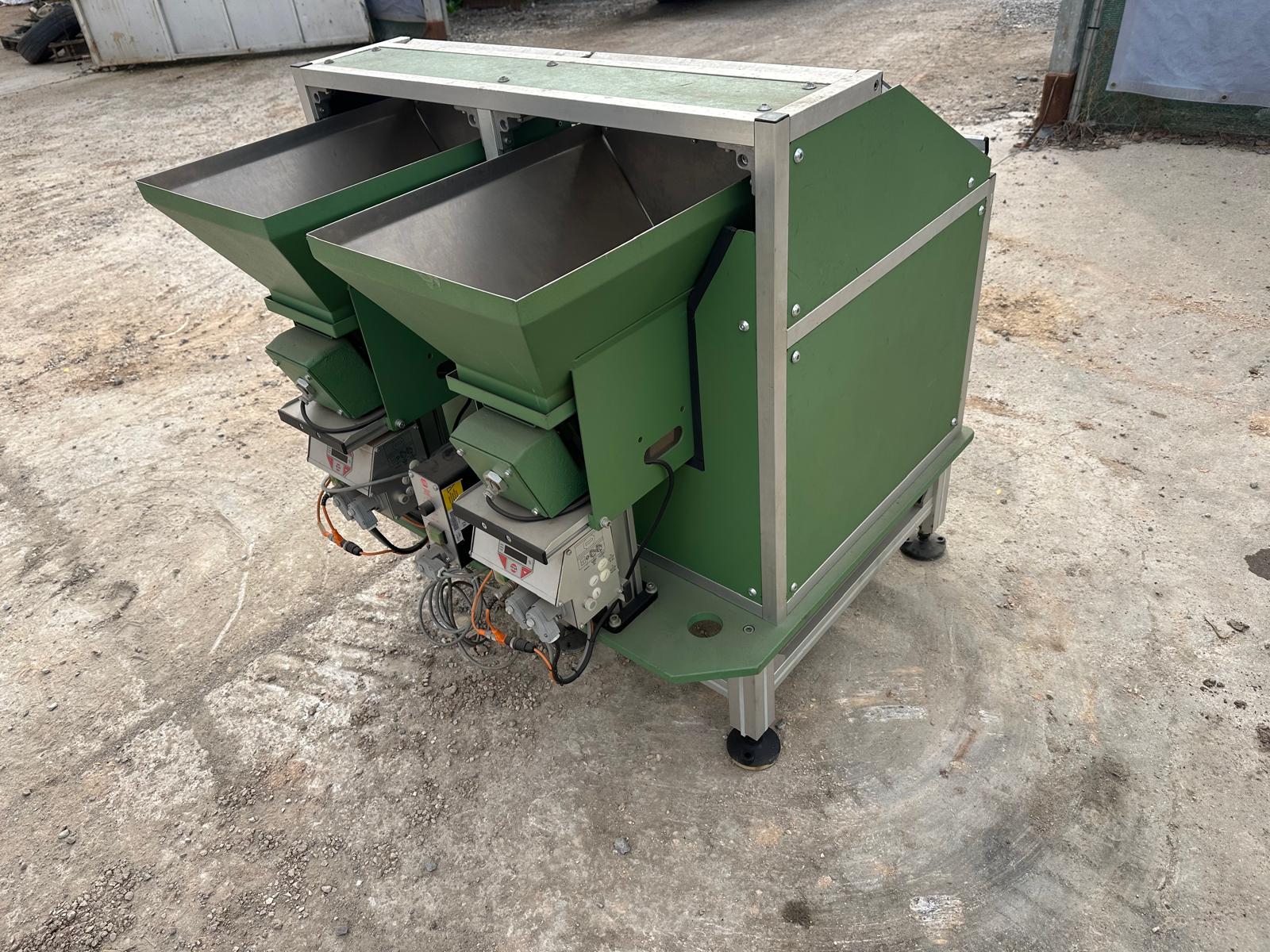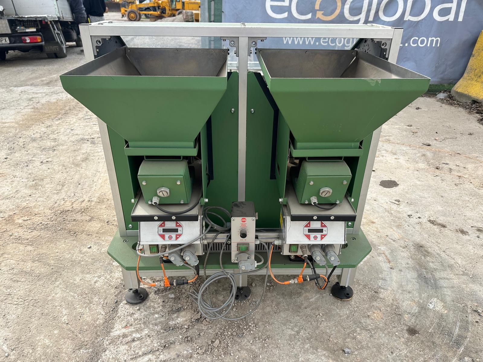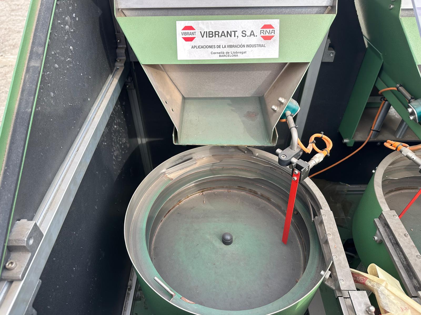 VIBRANT S.A. brand industrial vibratory feeder with double hopper and double vibratory bowl. Manufactured in 2001. Ideal for automatic parts feeding on assembly/production lines. 220V 50Hz power supply, IP54 protection, RNA speed control, and linear discharge/guide. Pneumatic system (operates with air, regulated to 5 bar). Works well, can be viewed and tested. Contact me via WhatsApp. Video available on the YouTube channel ecoglobal21.